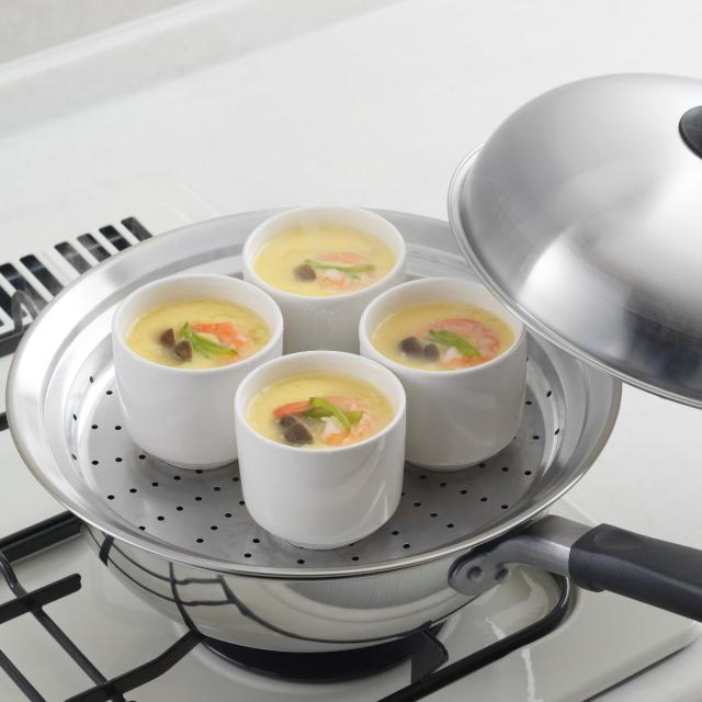 ドーム型の蓋はしっかり加熱蒸気が対流し、ムラなくふっくら蒸しあがります。高さがあるので、茶碗蒸しや大きな肉まんを温める時に便利です。