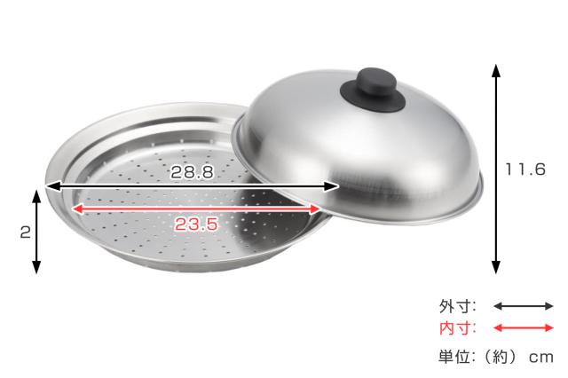 | サイズ | 約 高さ11.6(cm) 直径:約 28.8(cm) プレート深さ:約 2(cm) プレート内径:約 23.5(cm) フタ高さ:約 6.8(cm) |