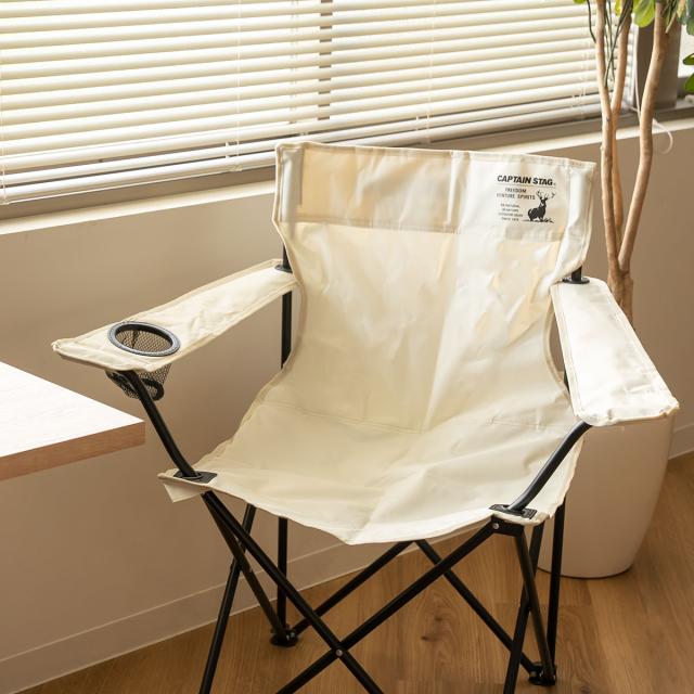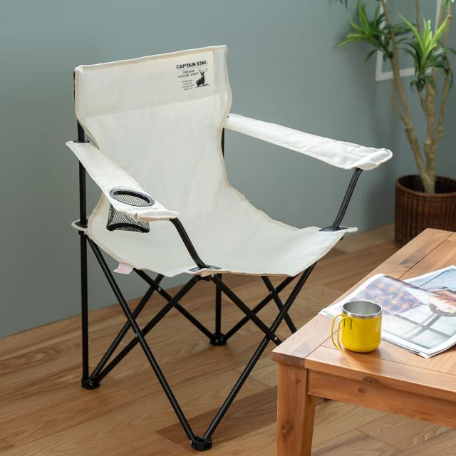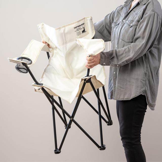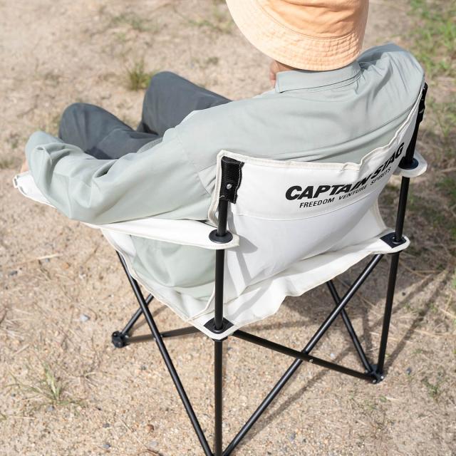 ラウンジチェア ホワイト キャプテンスタッグ CSシャルマン アウトドアチェア ( アウトドア 椅子 肘掛付き 折りたたみ チェア シンプル キャンプ いす 1人用 一人 ドリンクホルダー カップホルダー )