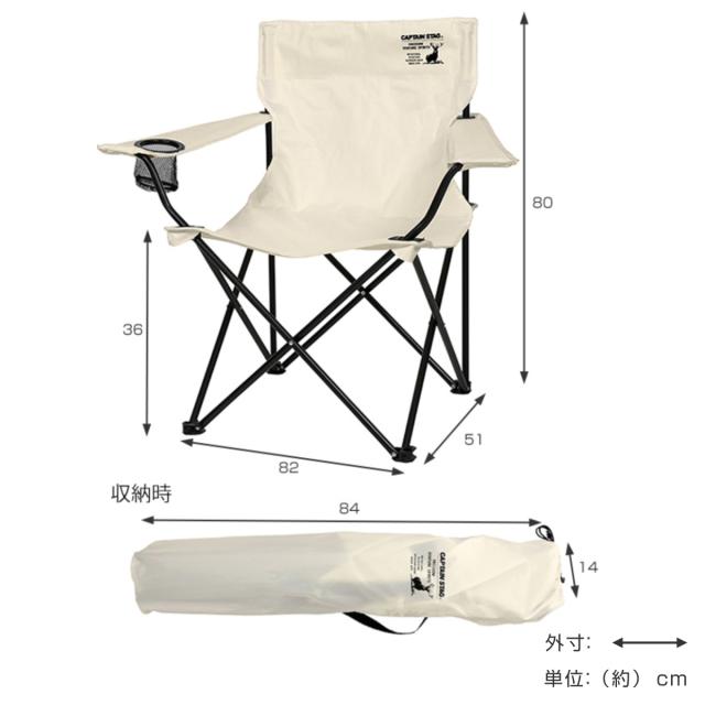 | サイズ | 約 幅82×奥行51×高さ80(cm) 座面高:約 36(cm) 収納時サイズ:約 幅14×奥行14×長さ84(cm) |