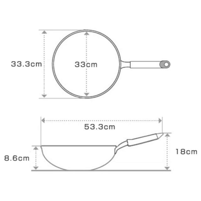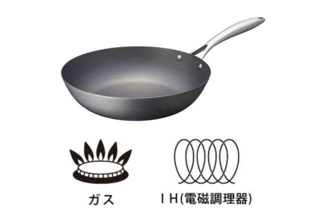 大人数の料理や作り置きのおかずなどを作るのに便利なサイズです。深さがあり食材がこぼれにくいので、炒飯や野菜炒めにぴったりです。ガスはもちろん、200VのIHクッキングヒーターなどの熱源にも対応します。