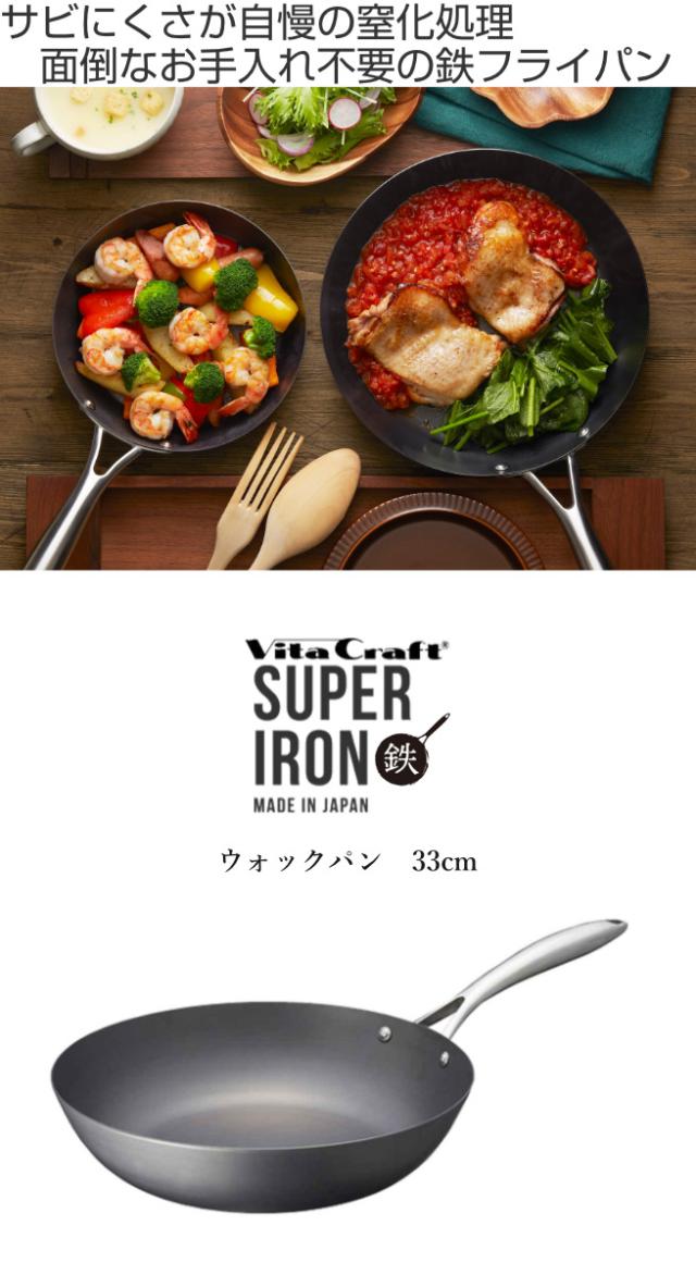Vita Craft 深型フライパン 33cm IH対応 鉄製 スーパー鉄 ウォックパン ( ビタクラフト ガス火対応 鉄フライパン 金属ヘラOK 日本製 33センチ 鉄 フライパン 深型 炒め鍋 いため鍋 フライパン ih対応)