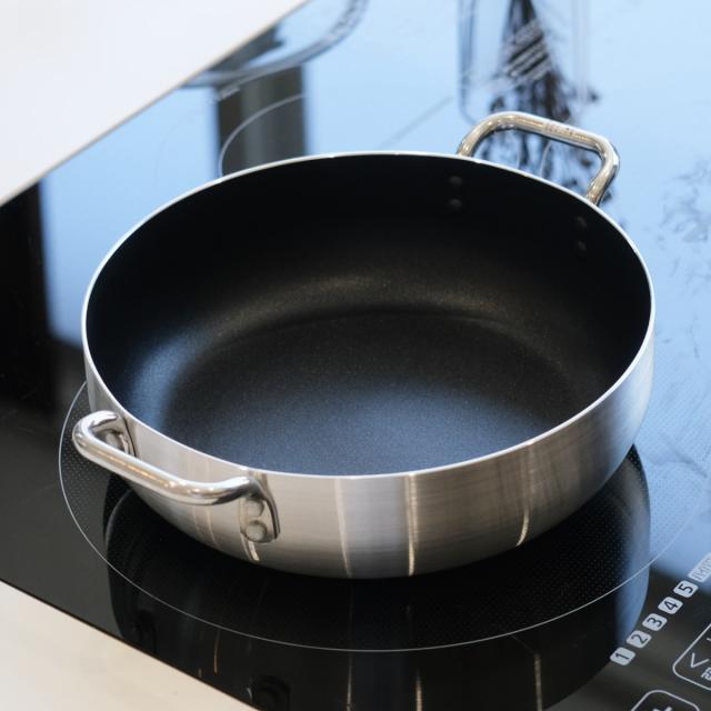 | 材質 | 本体:アルミニウム合金 はり底:ステンレス鋼 内面表面加工:ふっ素樹脂塗膜加工 |