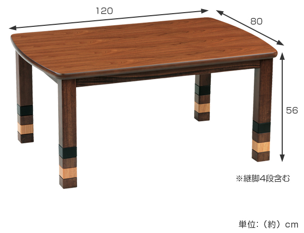 《リビングテーブル 継脚 継足付き 食卓 こたつ本体 ウォルナット ウォールナット 長方形 木製 ブラウン 茶色 和風リビング 和室 120センチ 120cm 手元コントローラー付き》