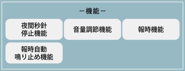 | 内容量 | 本体1個(付属品:テスト用乾電池、木ネジ1個、取扱説明書、保証書、振り子) |