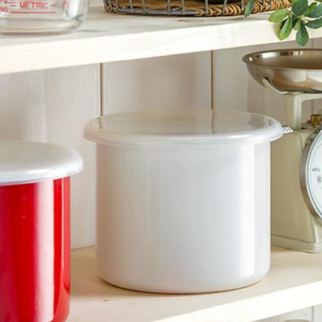 | 材質 | 容器:ほうろう用鋼板(板厚0.5mm) 表面加工:ほうろう加工 シールふた:ポリエチレン |