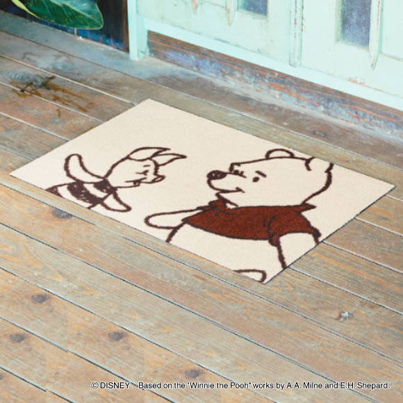 ●くまのプーさんと仲良しのピグレットの、手描き風のデザインの玄関マットです。