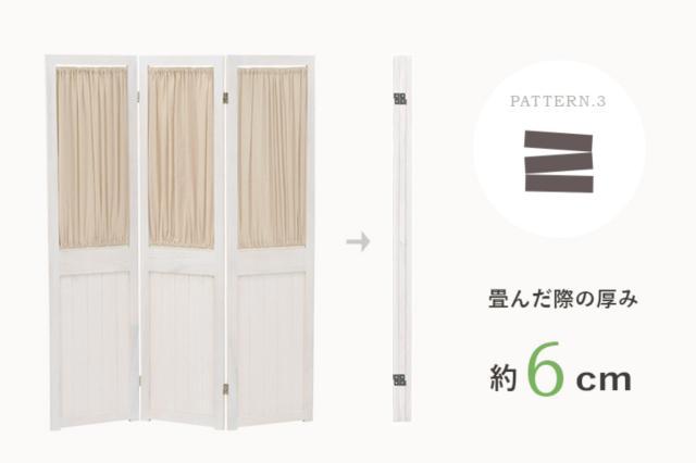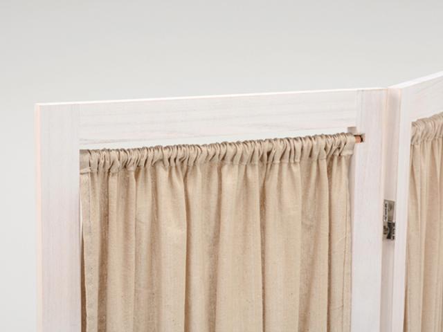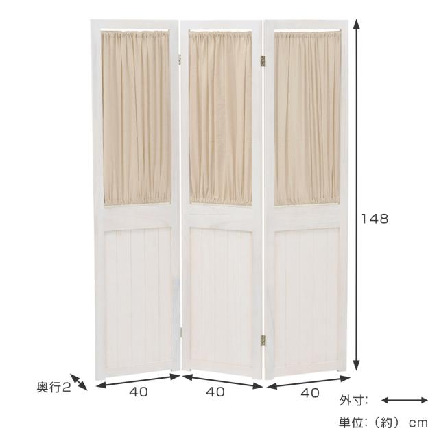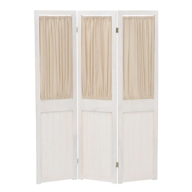 パーテーション 3連 衝立 カーテン付 天然木 フレンチカントリー シャビーウッド ( 間仕切り 目隠し パーティション 自立 折りたたみ カーテン 仕切り ついたて 木 完成品 おしゃれ アンティーク 部屋 360度 蝶番 突っ張りパーティション)