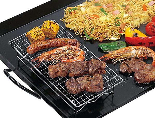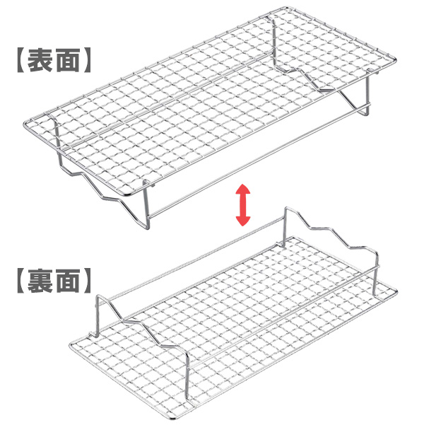 表面に焼けた食材をのせれば、食材の焼きすぎを防止します。裏返しにして使用すれば短い串を使った焼き鳥などを焼くのに使ったり、向きを変えれば長いバーベキュー串を焼くのに使用できます。