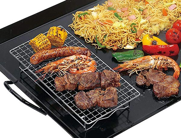 鉄板やアミの上に裏向けて置き、タテ向きにアミについてるへこみを利用すれば、バーベキュー串などを安定させて焼くことができます。