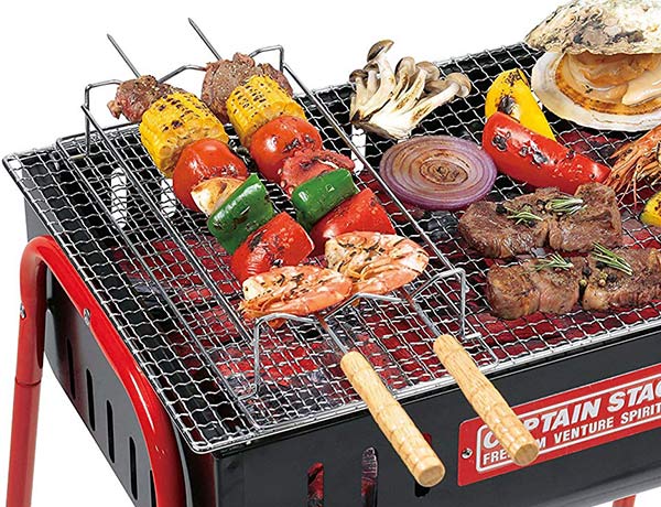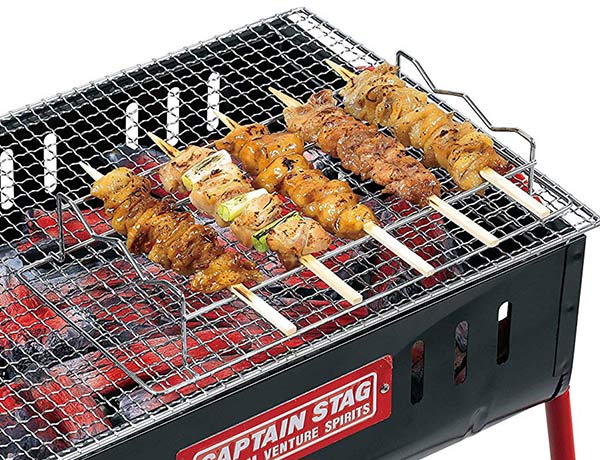 鉄板やアミの上に裏向けて置き、その上に短い串を並べていけば、焼き鳥などを楽しむことができます。