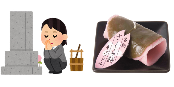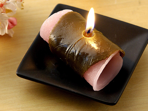 本物そっくりなさくら餅キャンドル。お供えや贈り物に