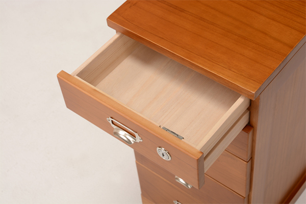最上段の引出しは鍵穴付きです。見られたくない物、触られたくないものも安心して収納できます。