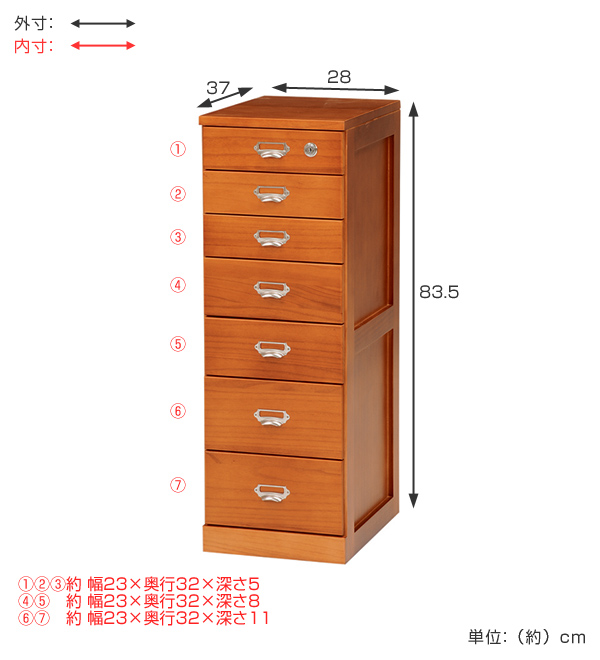 優れた性質を持つ桐材使用の7段チェスト 幅28cm