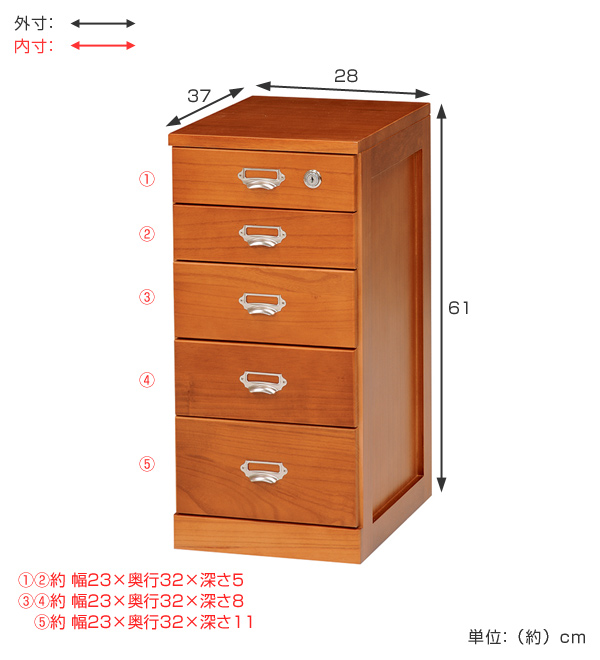 優れた性質を持つ桐材使用の5段チェスト 幅28cm