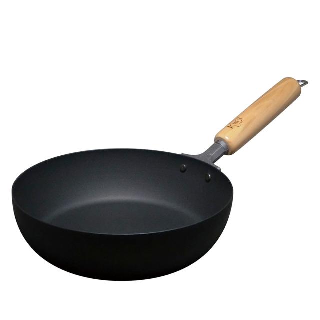 鉄フライパンは、木製の持ち手なので調理中も熱くならず布巾を使って握る必要もありません。重そうに見えますがそこまで重くなく女性の方も安心して使えます。鉄製のフライパンは耐久性に優れ、使えば使うほど油のなじみが良くなり、味わいが増すので、一生ものの道具となるでしょう。