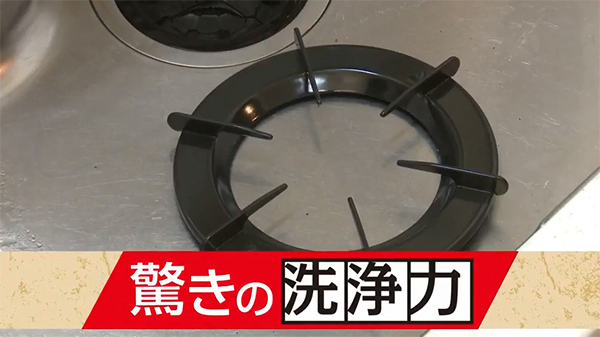 - 市販の洗剤では落ちなかったガスレンジの焦げ付きによる焦げ茶色の汚れが落ちなくて困っておりましたが、本商品をガスレンジの汚れ部分に掛けて、スポンジで擦ったところ、真っ白のガスレンジが元の白さに戻りました。大変助かりました。