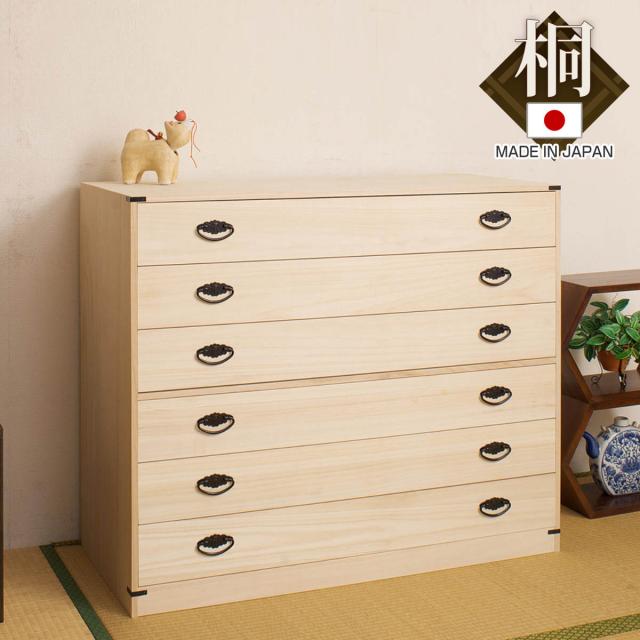 桐タンス 幅99.5cm 6段 台輪あり 着物用 日本製 ( 桐箪笥 収納 桐チェスト 国産 完成品 桐 たんす タンス 箪笥 積み重ね 桐衣装箱 着物収納 衣類収納 チェスト 天然木 )