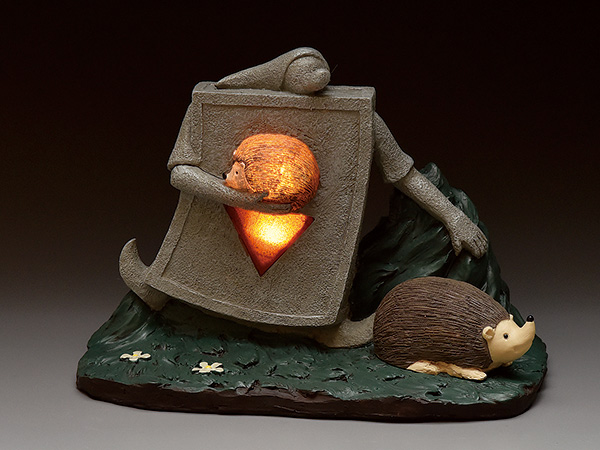 ダイヤのマークと胸に抱いたハリネズミがライトになっていて、優しい光を灯します。