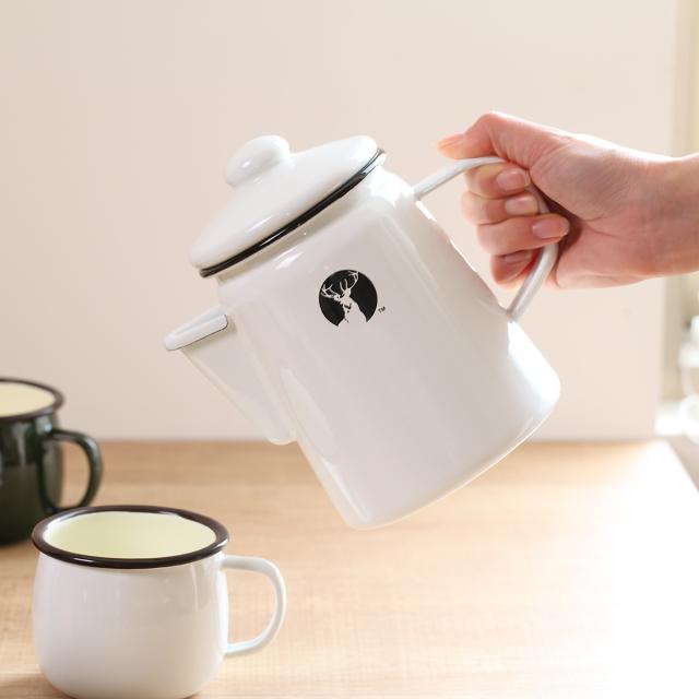 飽きのこないシンプルなデザインで、直火にも使えるホーローケットルです。満水容量約1.1L、適正容量約750mlで、コーヒー4杯分ほどのお湯を沸かすのにちょうどよいサイズです。