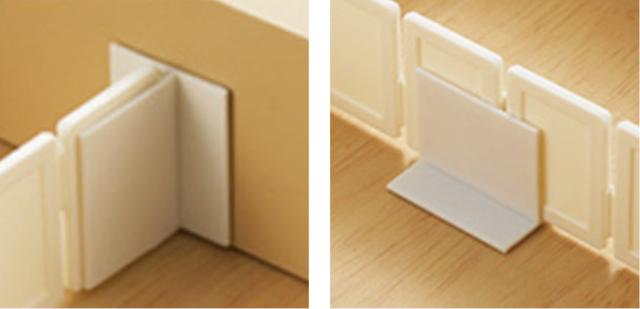 パーティションと一緒にT型パーツを使う事で仕切りのがたつき・ぐらつきを防ぎます。収納する時にパーティションが倒れるストレスもありません。