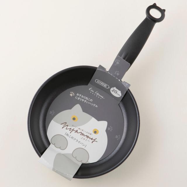 フライパン 20cm IH対応 Nyammy ねこのフライパン 貝印 ( ガス火対応 20センチ 浅型 炒め鍋 いため鍋 アルミフライパン 猫 ふっ素樹脂加工 フッ素樹脂加工 オール熱源対応 フライパン ih対応 20cm フライパン 20cm)