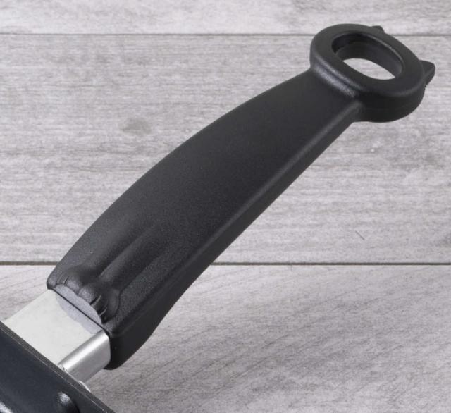 かわいいのにしっかり握れるハンドルです。引っ掛け穴があいているので、吊り下げて収納することができます。
