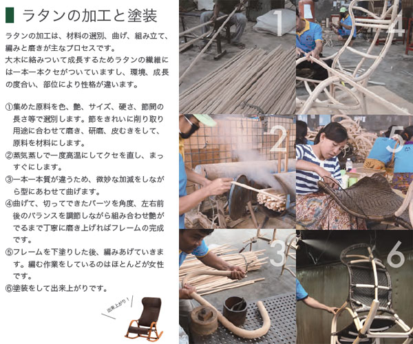 ●材料に皮付ラタンを使用し、自然の風合いを味わうことができます。