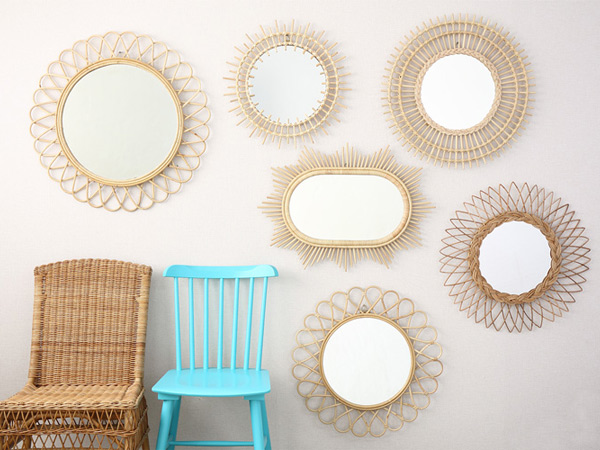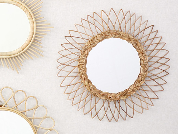 華やかな存在感があるラタン枠のミラー