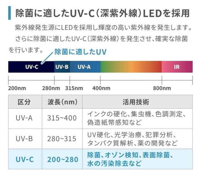 【除菌モード】除菌のみ10分間行います。※タイマー内臓で自動的に自動的に停止します。途中でモードを切り替えたり、動作を停止させることも可能です。