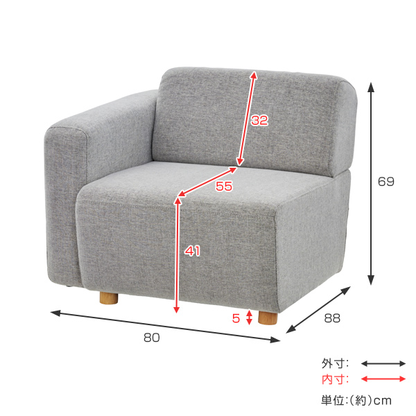 シングルソファ 一人掛け 右片肘タイプ キューブシリーズ 幅80cm ( ソファ ソファー 椅子 イス チェア ローソファ ソファチェア リビングチェア ひじ掛け かた肘 ファブリック 布張り 布製 1人掛け 一人掛 1人掛 ソファー )