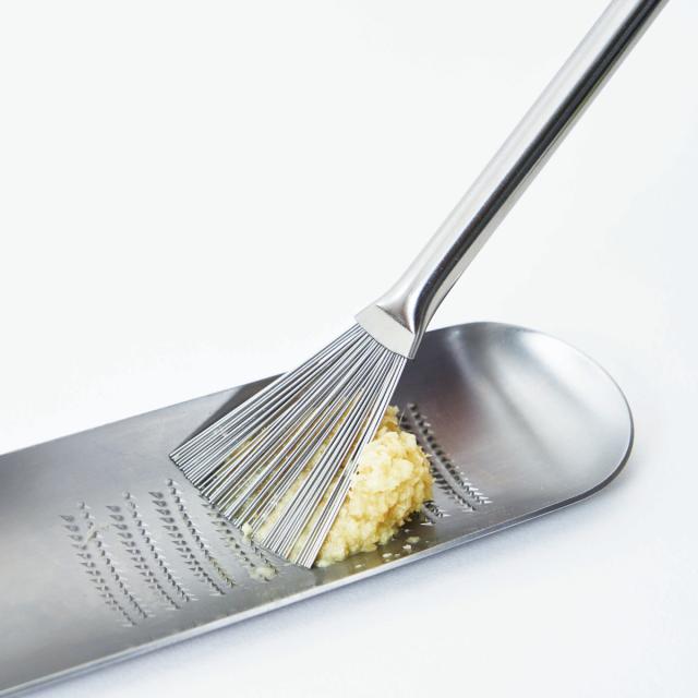 おろし金ですりおろした生姜やニンニクなどを、目詰まりなくキレイに取って無駄なく使えるグレーターブラシです。おろし器の歯の間に繊維が絡まってしまって上手く取れない!というお悩みを解決します。