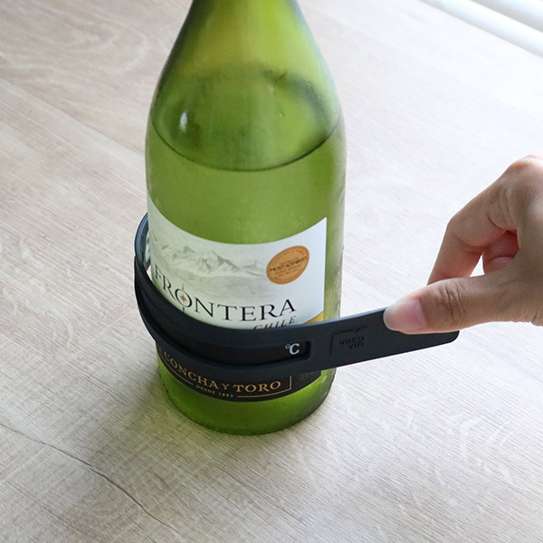 ●本体をワインボトルにくるりと巻きつけるだけで、簡単にワインの温度を知ることができます。