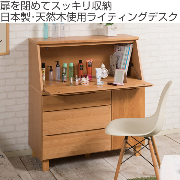 デスク パソコンデスク 幅100cm 木製 学習机 日本製 プリンター収納 ( PCデスク ライティングデスク 学習デスク アルダー 完成品 机 勉強机 薄型デスク 木製デスク 収納 扉 引き出し フラップ天板 北欧 )