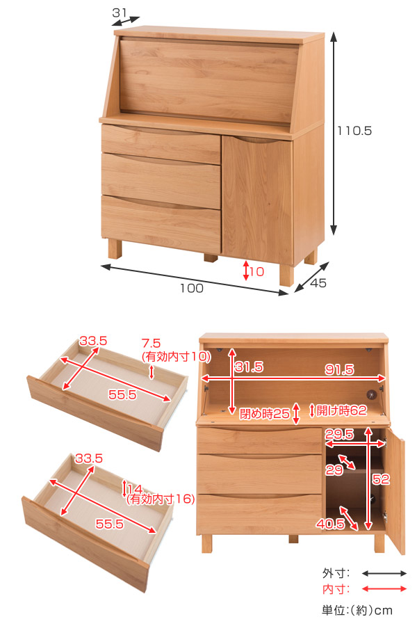 | サイズ | 約 幅100×奥行45×高さ110.5(cm) |
