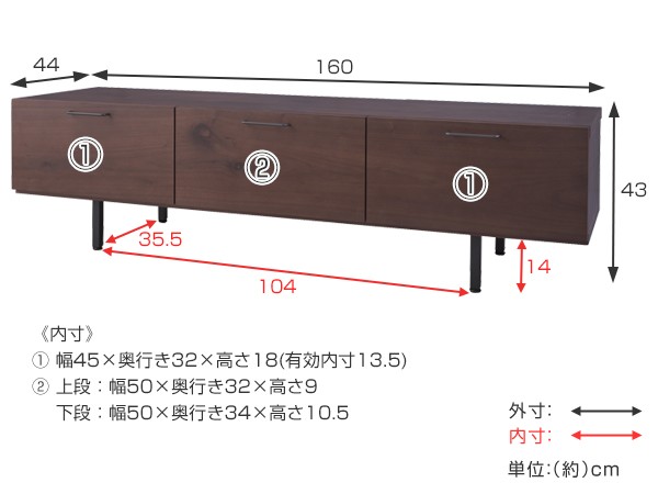 | サイズ | 約 幅160×奥行44×高さ43(cm) |