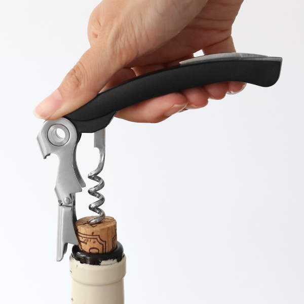 ●テコの原理を利用して弱い力でも開栓しやすいコルク抜きです。