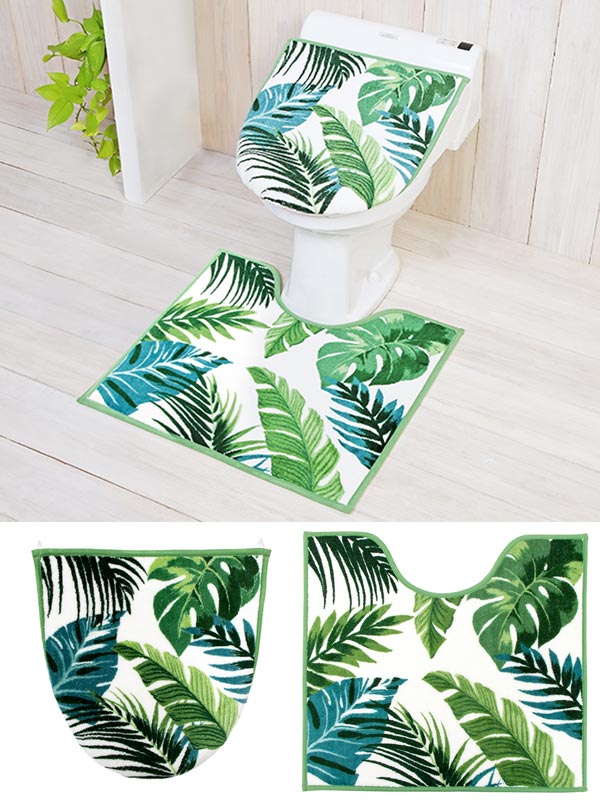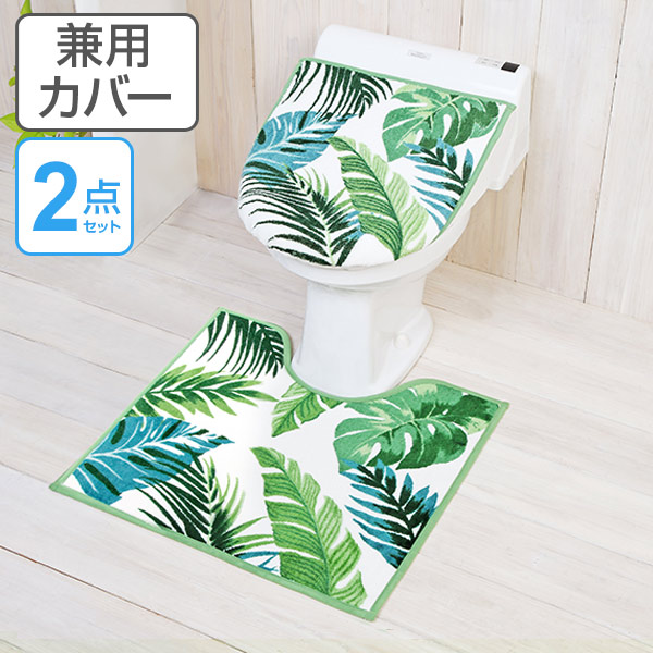 トイレマット フタカバー セット ボタニカ 洋式2点セット 兼用 ( トイレ マット ふたカバー トイレふたカバー 蓋カバー 洗浄 暖房 普通 2点セット トイレセット 洗える 滑り止め 55×60 長さ55 幅60 2点 トイレ用品 )