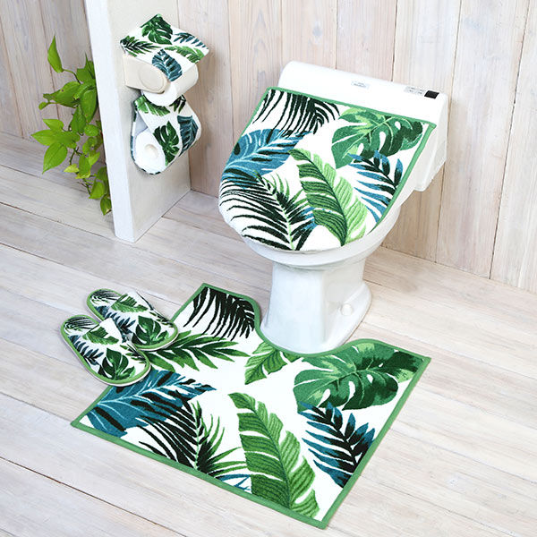 ボタニカルガーデンのような雰囲気のあるトイレ空間を演出してくれるデザイン、ボタニカシリーズ。 フタカバーとマットの以外にも、スリッパ、ホルダーカバー、便座シートのご用意もあります。同じテイストで揃えれば、トイレがいっそう華やかになります。