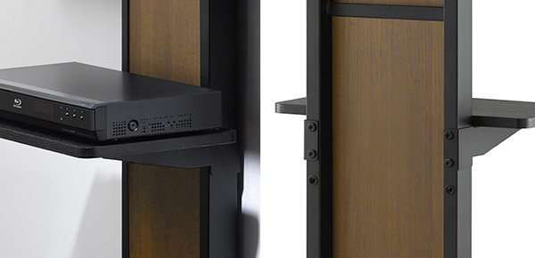 AV機器などを載せられる棚板は、高さを2段階で調節できます。