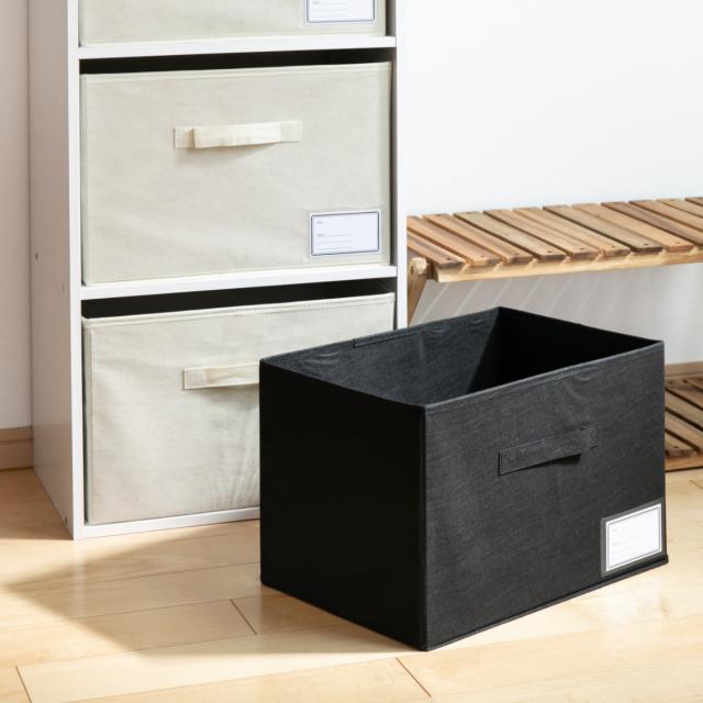 カラーボックス1段にぴったり収まる、見出し付き収納ボックス