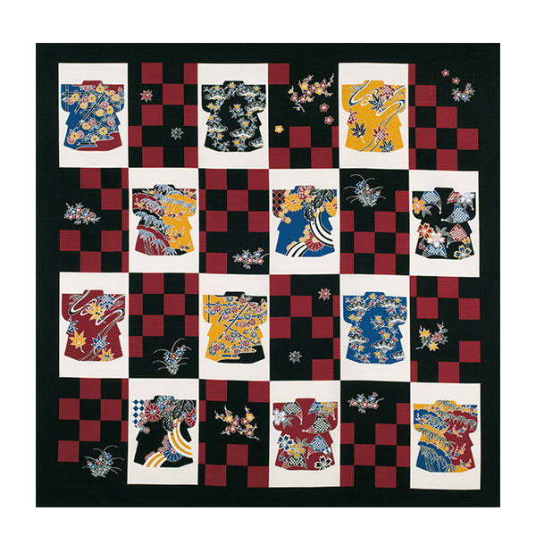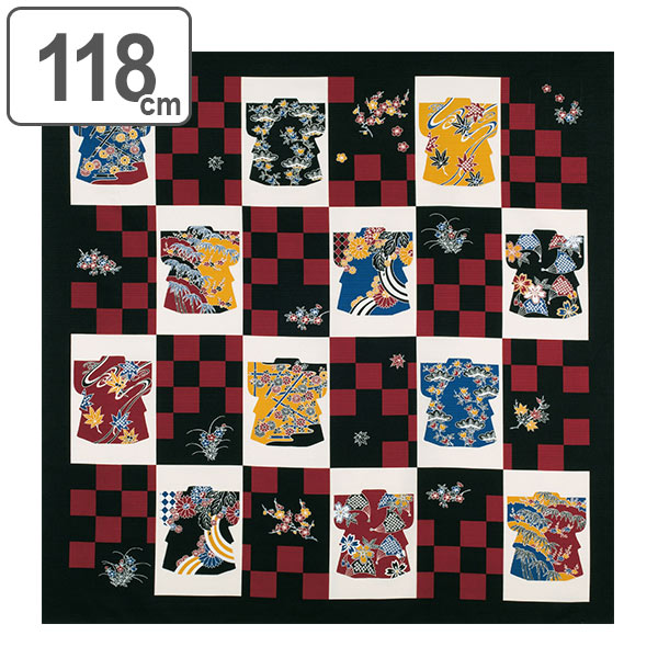 風呂敷 自遊布綿大ふろしき きもの市松 118cm ( ふろしき 大判 大風呂敷 エコバッグ 暖簾 テーブルクロス 座布団 クッションカバー 着物 市松柄 伝統 お土産 洗える )