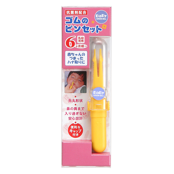 赤ちゃんのハナに入ったゴミ取りに最適なゴムのピンセットです。