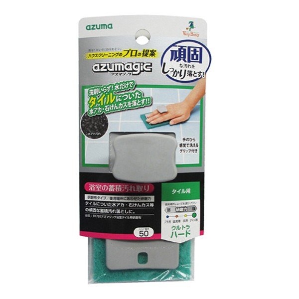 スポンジ お風呂掃除 アズマジック 浴室 タイル用研磨布 ( お風呂 掃除 清掃 タイル 浴槽 床 壁 湯垢 水垢 水アカ 石鹸カス 研磨剤付き 汚れ 落とし 浴室床 浴室壁 洗剤いらず 水のみ ハンディ 手のひら感覚 ウルトラ ハードタイプ )