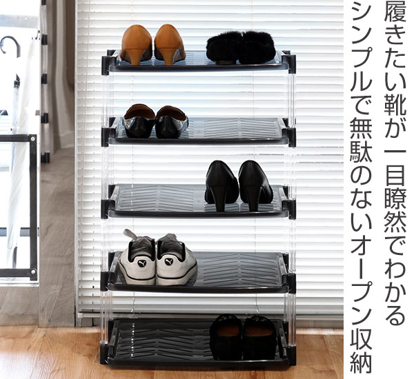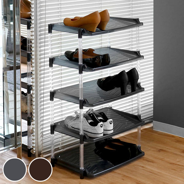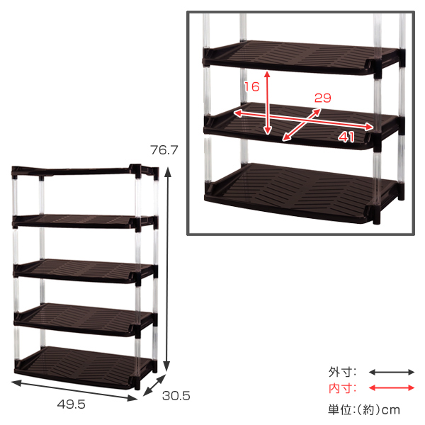 シューズラック 5段 幅49.5cm クリスタル ( 靴 収納 靴箱 省 スペース 下駄箱 玄関収納 簡単組立 シューズ ラック シンプル 軽量 玄関 オープン収納 むれない 約 幅49.5×奥行30.5×高さ76.7cm おしゃれ グレー ブラウン )