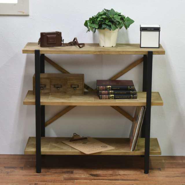 オープンラック 幅90cm 3段 組木 古材風 KALEIDO ( 本棚 収納棚 収納ラック シェルフ フリーラック アイアンシェルフ ラック オープンシェルフ 飾り棚 棚 リビング収納 家具 おしゃれ 収納 木目 木製 一人暮らし 約幅90 )