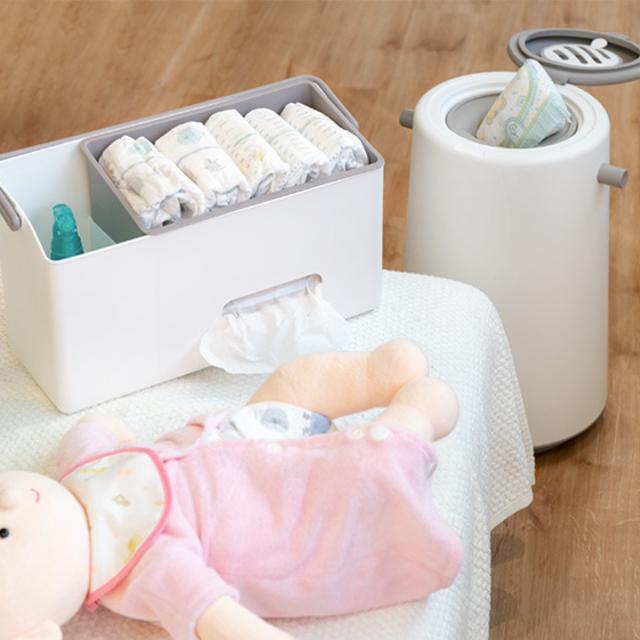 同色カラーのおむつペール『ダイパーポット』と合わせてお使いいただくと、統一感のあるスペースに。