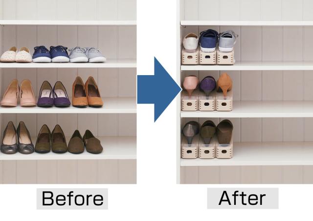 下駄箱内の収納力が2倍にアップするスリム靴ホルダー