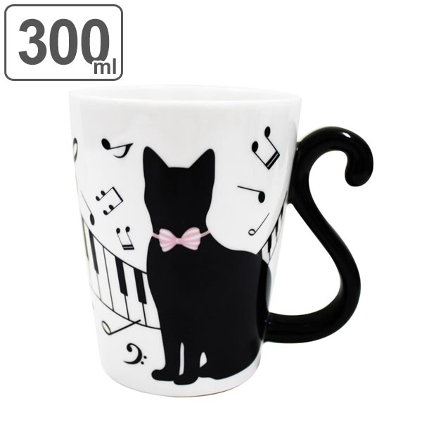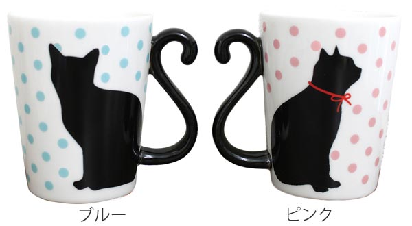 マグカップ 300ml 黒猫 ドット 磁器製 食器 ( 電子レンジ対応 食洗機対応 カップ マグ コップ 食器 ネコ 猫 しっぽ ペア おしゃれ )