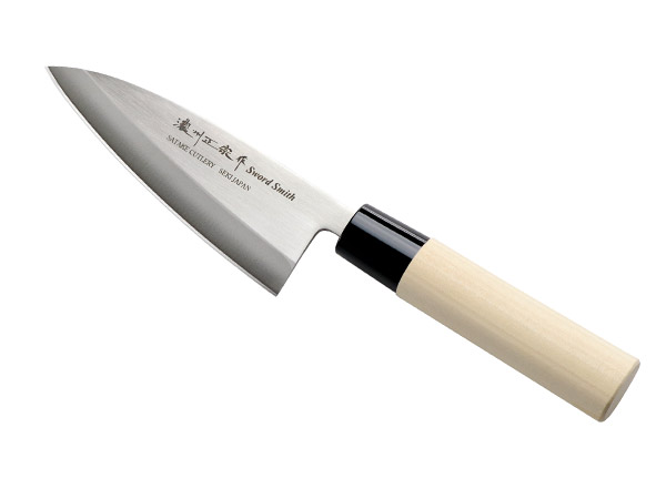 ●魚の三枚おろし、刺身の盛り合わせなど、主に魚料理に用いる本格出刃包丁13.5cmです。